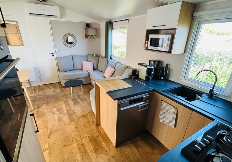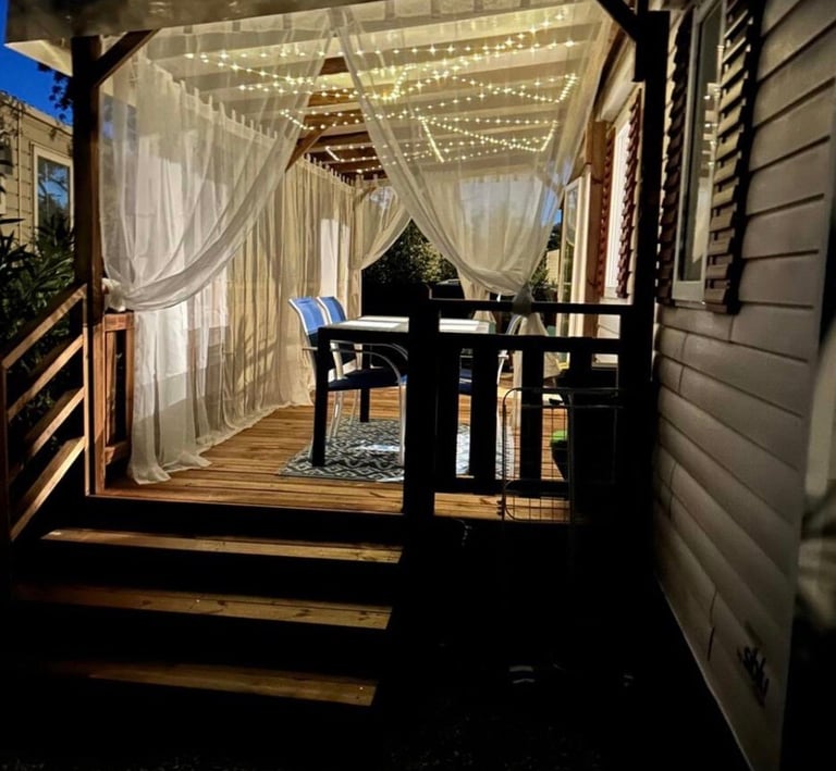 Climatisation, cuisine équipée, chambres confortables, literie soignée, Terrasse avec barbecue pour profiter des repas en plein air et moments conviviaux, salon de jardin, bain de soleil. Intimité grâce aux voilages présents sur nos terrasses.