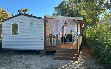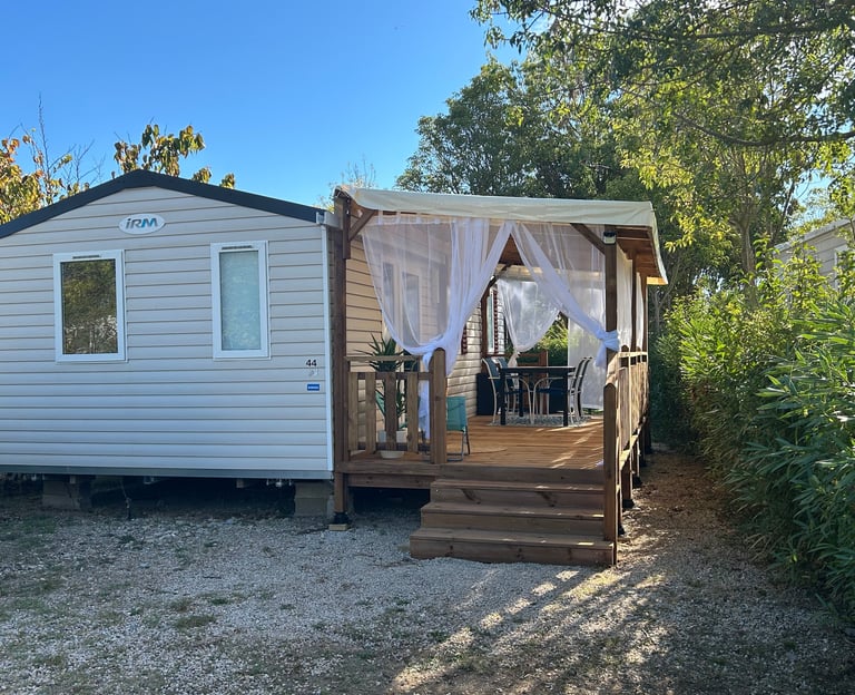 À l’intérieur, vous découvrirez une ambiance chaleureuse et cocooning, décorée avec goût, dans un style simple et élégant. Le bungalow allie confort, intimité et douceur de vivre, pour un séjour ressourçant à deux pas de Montpellier et des plages.