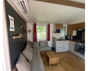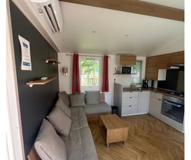 Ce bungalow de presque 29 m² offre tout le nécessaire pour un séjour au calme : lumineux, fonctionnel et parfaitement équipé.