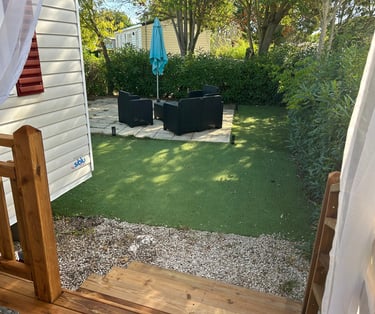 Sa belle terrasse aménagée et son salon de jardin cosy invitent à la détente : petit-déjeuner au calme, apéritif au coucher du soleil, moments de partage… tout est pensé pour votre confort.