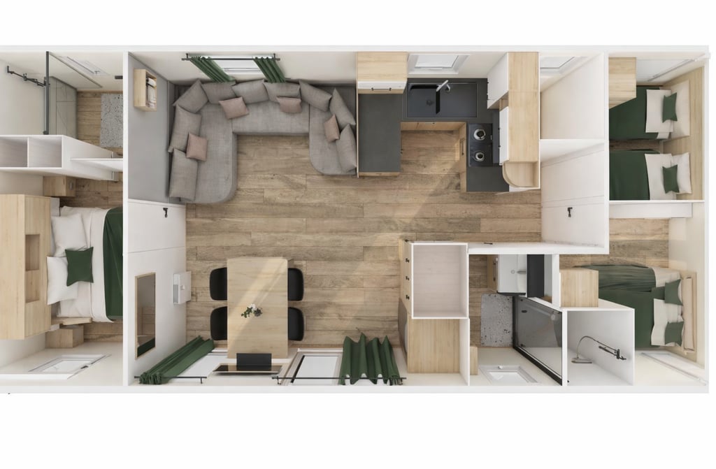 Plongez dans l'ambiance chaleureuse de nos bungalows à travers ces images.